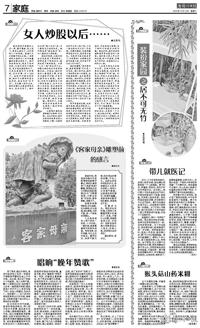 百善孝为先。现在的生活环境,已经很少有雕塑所展示的境况了,但是,不管什么时候,母爱都是伟大的,永恒的!客家母亲的高大形象更是让人难忘,在我心里,母亲是永远的思念!