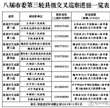 本轮巡察时间为2024年10月上旬至12月上旬。巡察期间,设立专门值班电话和邮政信箱,主要受理反映被巡察党组织领导班子及其成员、下一级党组织主要负责人和重点岗位人员问题的来信来电来访,重点是关于违反政治纪律、组织纪律、廉洁纪律、群众纪律、工作纪律和生活纪律等方面问题反映。其他不属于巡察受理范围的信访问题,将按规定转交有关部门处理。巡察组受理信访时间截止到2024年12月6日。(市委巡察办)
