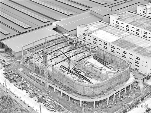 图为在广西融水苗族自治县粤桂协作产业园,工人在建设粤桂帮扶车间。