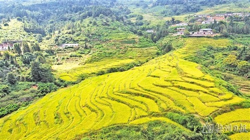 夏日的炽热逐渐消散,秋季带来了温柔的凉意,也为大地铺上了金色的外衣。走进平远各镇的田间地头,晚造水稻已进入成熟收割期。放眼望去,金黄色的稻田宛若黄金铺满大地,一大片金黄镶嵌在青山绿水间,丰盈了整个秋色,美不胜收。