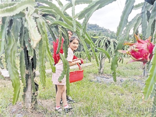 里斯家中火龙果,艳丽鲜红挂满枝。