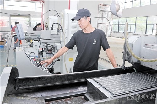 在梅县区畲江孵化产业园的梅州市中芯云联智能科技有限责任公司加工中心车间里,自动化设备正在打磨加工无人机关键零组件,工人们正铆足干劲,抓紧赶制客户订单。