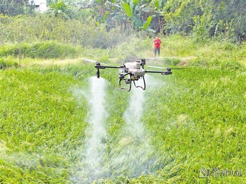 无人机飞防是志颖农资提供的农业生产托管服务之一,目前已发展成为该公司开展农业生产社会化服务不可或缺的一项内容。“100亩水稻的病虫害防治作业,人工洒药需要好几天,一台植保无人机不到半天就能完成,效率明显提高。”张冲冲告诉记者,志颖农资从2017年起开展农业生产社会化服务,目前公司拥有各类型植保无人机10台,专业飞手10多人。