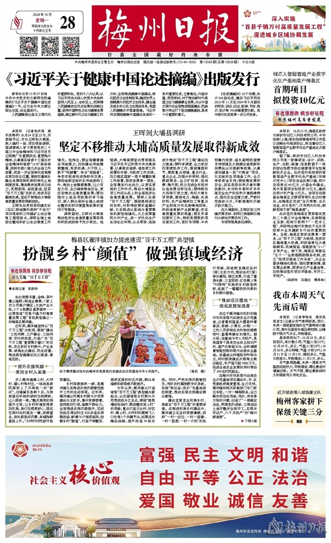 近年来,雁洋镇坚持以“百千万工程”为统领,围绕“建设‘三色同辉、三产融合、三线同美’的叶帅故里,打造广东‘百千万工程’重要展示窗口”的目标,突出抓好乡村振兴、产业发展、绿美生态建设、民生改善,推动典型镇建设加力提速、落地见效。