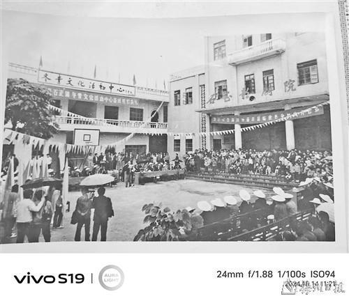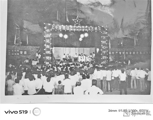 以前,乡村文化生活单调枯燥,少队伍、少设施、少活动。进入20世纪90年代之后,平远县各级党政机关和文体部门较为重视文化工作,采取送戏送电影下乡或办文化中心等形式,丰富人们的精神文化生活。图①为1991年中秋期间,石正镇上丰村举办的文艺、体育、游园及“社教”(社会主义思想教育)知识有奖竞赛于一体的大型活动现场;图②为1991年元旦前夕,平远县石正镇举行由香港知名人士何冬青先生捐资兴建的“冬青文化活动中心”落成剪彩活动。活动中心内设有图书阅览楼、体育活动室和退休老人活动娱乐场所等。
