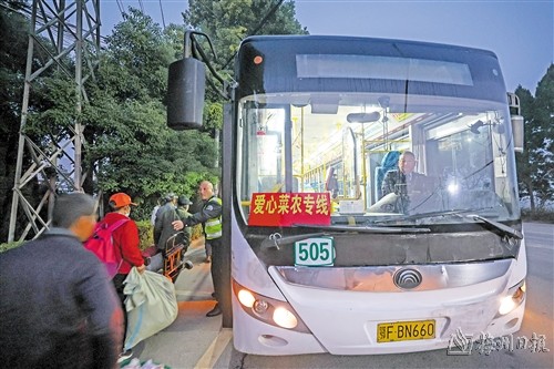 近期,湖北省襄阳市的505路公交开通“爱心菜农专线”。该专线每日6时30分发车,采用“大站快运”的运输模式,为城郊菜农提供了便捷实惠的出行方式。(新华社发)