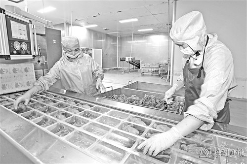 “我们产业园建设期间,新建了4900㎡现代化生产加工厂房,购置了自动分级秤、冷冻保鲜设备、低温高湿解冻机、自动化真空包装机、产品卤制设备、鸽血灌装机等一批先进生产加工设备,推进自动化生产加工水平,提升生产加工效率。”园区相关负责人介绍道。