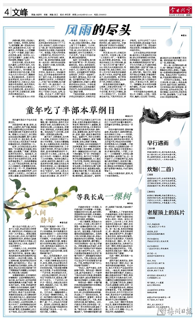 农场里种柑、橘、橙、荔枝、龙眼等,土地肥沃,物产丰富,果园里除了茂盛得叫得出名字的果树,还有琳琅满目数不胜数的杂草杂果。跟着大人们去出工,自己便自由自在地在周边撒野,看什么都好奇,无论芽、叶、茎还是花、果、根,无论长在地上的还是地下的或者贴着地面长的,见啥都想尝一口。