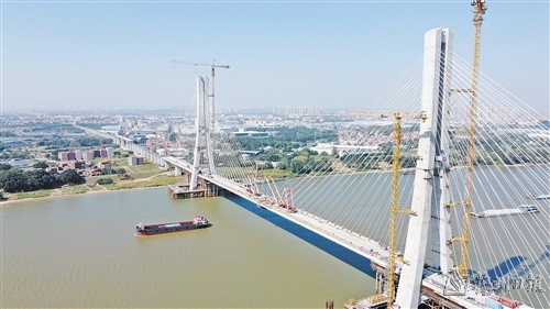 图为广湛高铁佛山特大桥跨东平水道斜拉桥合龙。