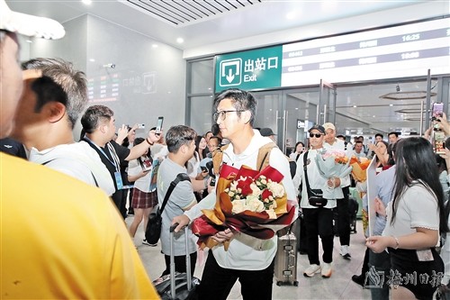 本报讯 (记者赖锋 特约记者周扬 曾文敏)11月2日16时30分许,香港明星足球队一行乘坐高铁抵达五华。他们将于11月3日晚参加“相约五华 常来长乐”2024香港明星足球队友谊赛(梅州五华站),在五华惠堂体育场与五华常乐足球联队同场竞技。