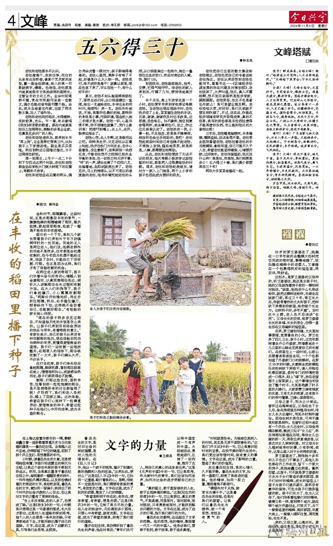 壮哉!文峰!文峰古塔兮,文星村中。巨笔喻其兮,锋刺云空。清嘉庆建兮,黎庶仰崇。筑塔井锁金龟兮,人才出商贸荣。对应神山之形胜兮,遂龙虎榜之愿隆。凌云高耸十一层兮,入史已逾二百冬。远瞻雄伟兮,内蕴玄功。循阶登望兮,四维葱茏。斗拱鸟飞兮,檐角瑞拱。光承日月兮,际会云风。广视山川之秀丽兮,远瞻乡邑之繁荣。九五重修兮,决策功隆。省级文物保护兮,遐迩万姓敬崇。