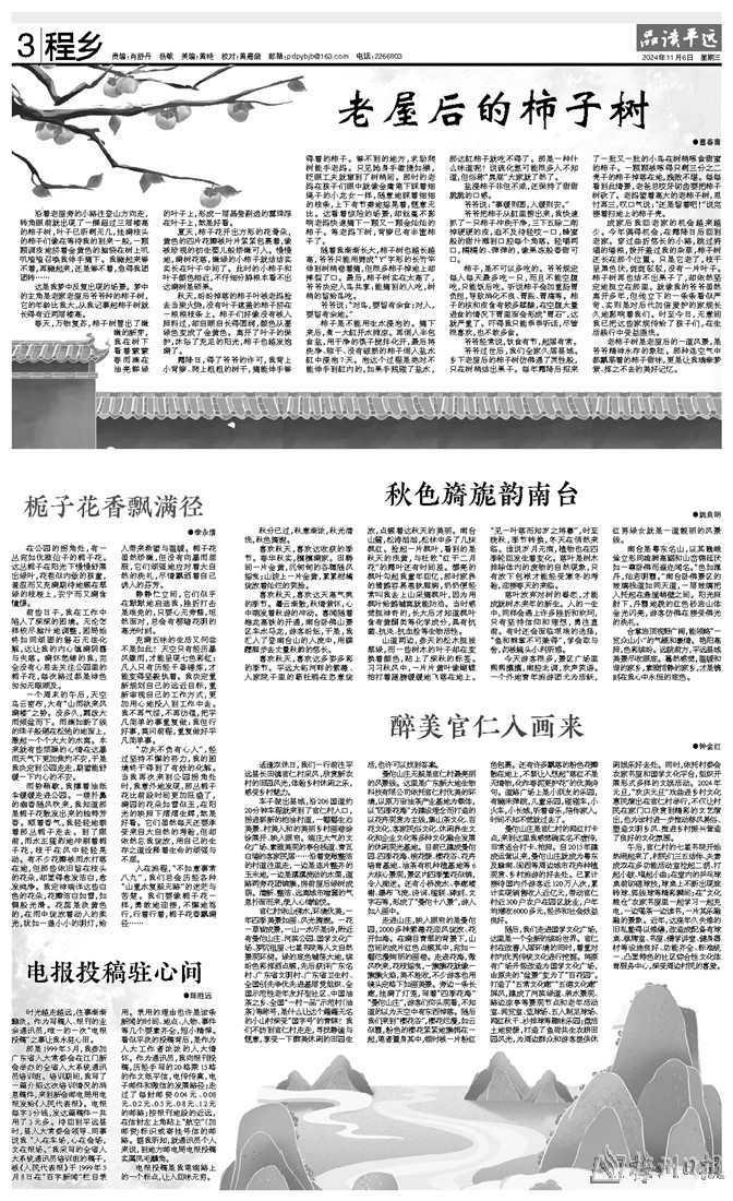 老柿子树是老屋后的一道风景,是爷爷精神永存的象征。那种连空气中都飘荡着的柿子甜味,更是让我魂牵梦萦、挥之不去的美好记忆。