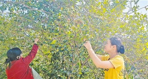 近日,记者走进位于华阳镇华新村的梅州市利源公司千亩油茶基地,只见沉甸甸的油茶果缀满枝头。工人们穿梭林间采摘油茶果,一派繁忙丰收景象。“基地面积3500亩,每天至少有30名采摘工人劳作,采果期长达一个月。”梅州市利源公司负责人邹翠玲是当地小有名气的产业村长。在公司和产业村长带动下,当地村民和村集体增收之路越走越宽。目前,华阳镇党委、政府通过挂点服务企业、助力公司多元发展等举措,积极培育公司使其上规,预计今年底可完成上规目标,届时预计每年可为华新村增加村集体经济6万元。