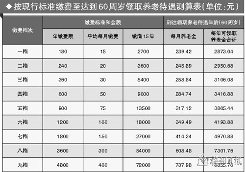 答:是的,每月缴纳15元,领取养老金时一年可领取2800多元;如果每月缴纳400元,领取养老金时一年可高达8800多元。当个人账户养老金领完后,政府仍按原待遇水平继续发放养老金,由政府补贴的基础养老金会适时上调。