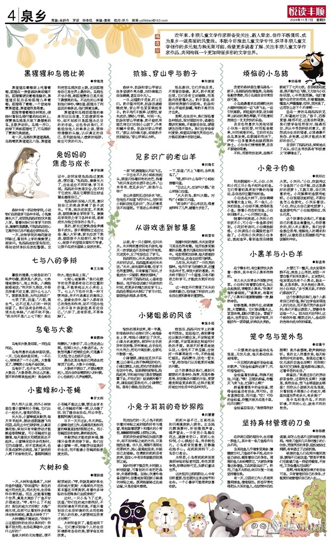 小白选在大树下,自信满满地等着大鱼上钩。不一会儿,小灰钓到鱼,小白却不屑,觉得那是小鱼。接着小花也钓到鱼,小白依旧瞧不上,一心只想钓大鱼。