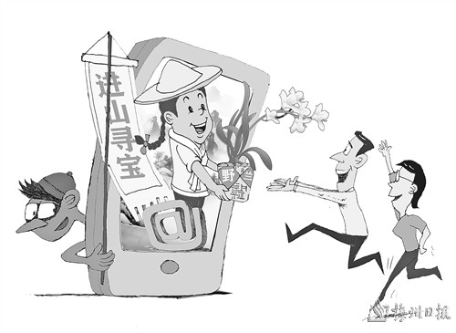 “我从山中来,带着兰花草。种在直播间,希望花卖好……”近日,有网友反映,有人在网络直播间公然叫卖列入保护名录的野生兰花。有媒体记者调查发现,确实有不少网络主播以“进山寻宝”的方式,在网络直播间叫卖野生花草,其中不乏兰花、石斛等国家重点野生保护植物。他们在直播间对歌曲《兰花草》进行了“粗暴改编”,挖穿了法律底线,破坏了国家重点保护的植物资源,奏响了令人不安的“带货旋律”。 朱权/图