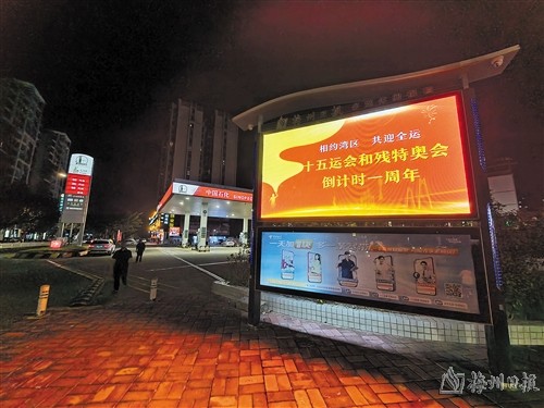 “‘相约湾区 共迎全运’十五运会和残特奥会倒计时一周年”“新时代 新全运 新湾区”“相约粤港澳 逐梦新征程”……当晚,梅州城区的多个梅州日报户外电子阅报栏和梅州全民健身广场、市体育局、市体彩中心、市体校等地的显示屏陆续亮灯,滚动播放各类标语,共同迎接十五运会,吸引不少市民驻足观看和拍照留念。