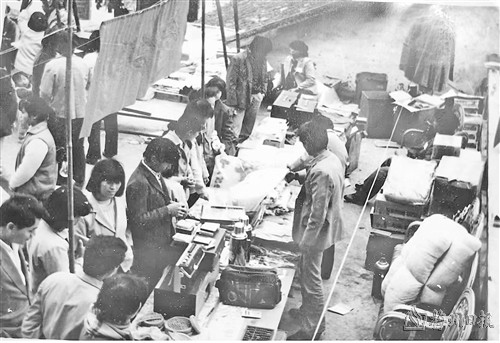 为活跃边贸市场和繁荣边贸经济,平远县在1990年春节期间,举办了大型冬季物资交流大会,平均每天营业额达5万元左右。图为顾客选购年货的情景。(凌育政)