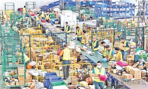 “双11”高峰来临,全国各地生产企业备足货源,电商、物流等相关的企业开足马力,加班加点,一片繁忙。(新华社发)