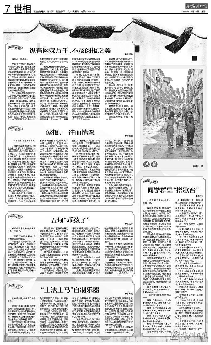 不时会有同学在班群里转发客家山歌,让人觉得客家人骨子里还是喜欢山歌的。不久前的一个傍晚,我也把本人刊登在《梅州日报》的一组山歌对唱词发到群里,之前先发个“引子”:客家先祖爱山歌,开口就唱好几箩。亻厓也来学前人样,编串山歌慢慢和。