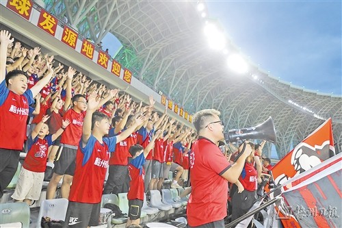 在中国足球职业化三十年的历史长河中,属于梅州客家的三年中超时间过得很快。对于本地球迷而言,在家门口体验顶级联赛确实是巨大的惊喜。周边球迷云集五华,两万多人齐声呐喊的非凡体验,将每个比赛日变成了小县城的大节日。即便2022年赛会制期间不开放看台,球迷也想尽办法在球场旁的高楼眺望;主客场制度恢复后,五华赛区将各类美食、非遗文化展示融入比赛日活动,以友好的观赛氛围迎接各地球迷,周边多个城市球迷组织的旗帜飘扬在惠堂体育场。这三年来,到五华看中超已经逐渐成为市民群众周末的生活方式之一。赢球的欣喜、输球的失落,赛场的跌宕起伏让各种交织情绪,一同构成了人们对这支球队的支持与牵挂。