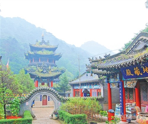 从龙泉寺、王尔烈书房出来,天空开始放晴,我们循着游览线路来到天上天景区。只见山峰奇峭,怪石嶙峋,悬崖绝壁,苍松翠柏。绿树掩映处,庙宇飞檐雾锁。