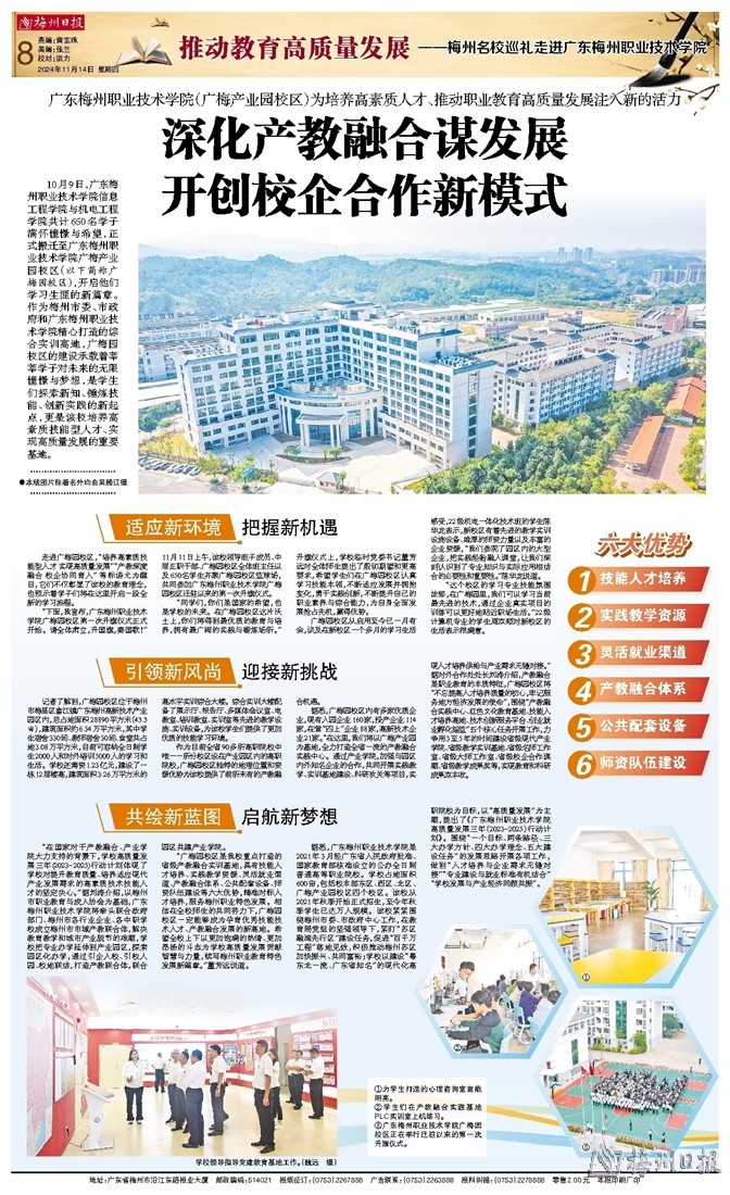 作为目前全省90多所高职院校中唯一一所分校区设在产业园区内的高职院校,广梅园校区独特的地理位置和资源优势为该校提供了前所未有的产教融合机遇。