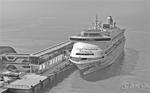 图为在北部湾国际邮轮母港拍摄的即将执行首航任务的“蓝梦之歌”号邮轮(11月15日摄,无人机照片)。