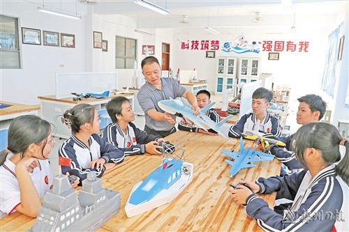 走进兴宁市华侨中学科技社团活动室,一组组学生作品引人瞩目:航天器模型、飞机、潜艇,有些甚至只是简单的小塑料瓶改造而成,接上电源却能活动起来。