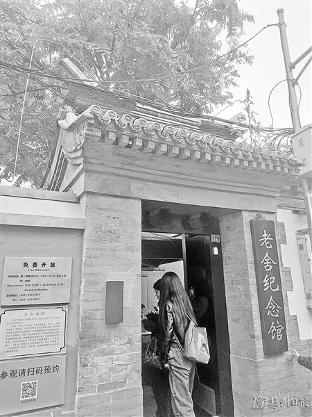 曾经创作小说杰作《骆驼祥子》《月牙儿》《四世同堂》的老舍,1949年应周恩来总理的邀请从美国回到了祖国,在北京买了这座房屋,1950年接回了在重庆的妻子儿女,从此一家人团圆。在这里,老舍接待过周恩来总理、末代皇帝溥仪,还接待过巴金、曹禺、赵树理等许多文化名人,曾经谈笑有鸿儒。在这里,老舍作为“人民艺术家”,满怀激情地笔耕不已,极力地讴歌新中国和社会主义建设事业,可谓是新中国成立以来同辈作家中写作数量最多的一位,他自称为“写家”“文牛”。从1950年到1963年的十三年间,他在这里单话剧就创作了《龙须沟》《西望长安》《茶馆》《全家福》《神拳》等15部,还创作了其他剧种,如儿童剧、京剧、歌剧和电影文学剧本等10部,又写了鼓词、相声、快板、太平歌词等各类曲艺和新诗,达到40余万字;除此以外,他还写了大量的散文、文论类文字,以及长篇小说《无名高地有了名》和《正红旗下》(未完)。这是常人无法想象、无法达到的劳动成果,都源于他对新中国无比的热爱,源于他对政治与文学关系的思考和平衡。他说:“一个伟大的作品,不但需要用热情去感动人,更需要一种崇高的理智启发人。”这句话现在镌刻在入门的照壁上。