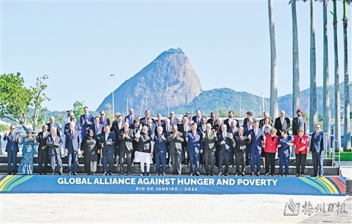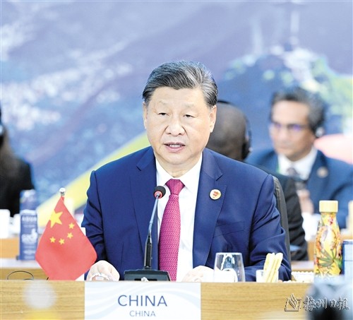 习近平指出,当今世界百年变局加速演进,人类发展面临的机遇和挑战前所未有。作为世界主要大国领导人,我们应该不畏浮云遮望眼,秉持命运共同体意识,扛起历史责任,展现历史主动,推动历史进步。中国主办二十国集团领导人杭州峰会时,首次将发展议题放到宏观经济政策协调的中心位置,这次里约热内卢峰会把“构建公正的世界和可持续的星球”作为主题,并决定成立“抗击饥饿与贫困全球联盟”。从杭州到里约热内卢,我们都致力于同一个目标,即建设一个共同发展的公正世界。