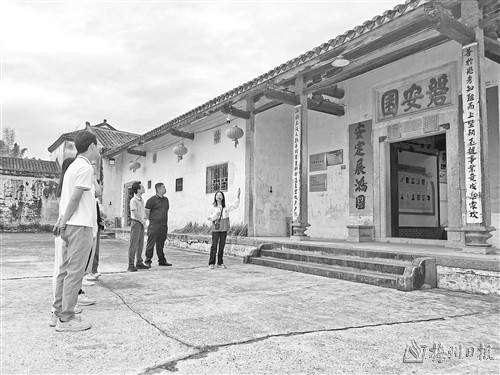 “大家好,欢迎来到兴宁十大古民居之一、兴宁版画实践基地——磐安围……”志愿者正在为游客讲解省级文物保护单位、岭南独具特色的客家民居——磐安围的故事。