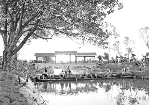 “蚌湖映月照齐昌,丞相文峰绝异常。泛泛扁舟浮古渡,纷纷夜气锁神光。鸡鸣春晓开窗牖,龙母遗迹有石床。最喜温泉堪濯足,墨池书院紫薇香。”这是在兴宁流传甚广的古八景诗,描绘了兴宁八处独特景色。