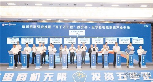 在招商方向上,五华持续盯紧智能制造、新型储能两大主导产业重点招商,推动形成产业集聚效应。今年6月,梅州招商引资推进“百千万工程”推介会·五华县智能制造产业专场活动在广州举行,现场签约项目10个,计划投资总额30.1亿元,为五华主导产业发展注入强大动能。“五华交通便利,用工保障足”“五华产业扶持政策好,各项基础支撑好”,各大企业纷纷看好五华,向五华抛出橄榄枝。