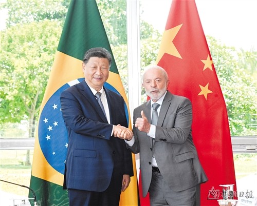 习近平强调,今天我们将中巴关系定位提升为携手构建更公正世界和更可持续星球的中巴命运共同体,同时将共建“一带一路”倡议同巴西发展战略对接,这是中巴关系发展的又一个历史性时刻,彰显了两国关系的全球性、战略性、长远性,符合两国人民普遍期待,将为双方推进各自现代化提供动力支撑,同时也彰显了中巴携手维护国际公平正义、促进世界共同发展的决心。中方愿同巴方一道,以人类前途为怀、以人民福祉为念,不断丰富新时代中巴关系内涵,做相互成就的“黄金搭档”,朝着构建人类命运共同体、构建更公正世界和更可持续星球的目标不断迈进,为人类和平和进步事业作出更大贡献。
