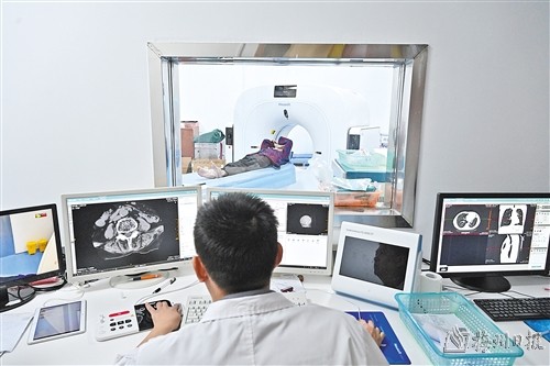 在平远县人民医院放射科,一台先进的螺旋CT设备正高效地为患者进行全面身体检查,特别是针对全身血管,尤其是心脏冠脉和头颈部的CT造影检查。“这台设备每月能帮助我们诊断超过100名患者,每天大约能处理150多个病例。”平远县人民医院放射科主任吴桂荣介绍道。