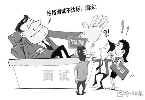 因此,性格测试不可太任性。最起码,对于用人单位而言,需要有理智的态度,不能过于依赖所谓的性格测试;对于劳动监管部门而言,也需要及时根据出现的招聘新情况,给所谓的性格测试立个规矩,切莫让性格测试上演性格歧视,影响就业公平。