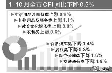 1-10月,全市社会消费品零售总额561.88亿元,同比下降0.1%。