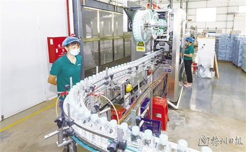 走进平远县热柘镇的绿叶矿泉水厂,工人们正在全自动生产线上忙碌着,经过吹瓶、清洗、罐装、打码、灯检、贴标,一瓶瓶灌装好的矿泉水缓缓通过自动传送设备,到达包装点进行打包装箱。据了解,绿叶矿泉水厂是热柘镇的“四上”企业之一,现有“绿叶名泉”“小栈名泉”等品牌,主要销往梅州、福建和珠三角。此外,绿叶天然食品有限公司还率先加入梅州市首批 “寿乡水”区域品牌,与全市14家水企“抱团突围”。近年来,绿叶矿泉水厂立足当地良好的自然环境和丰富的水生态资源,大力发展以矿泉水为主的饮用水生产,助力当地“生态经济”发展。
