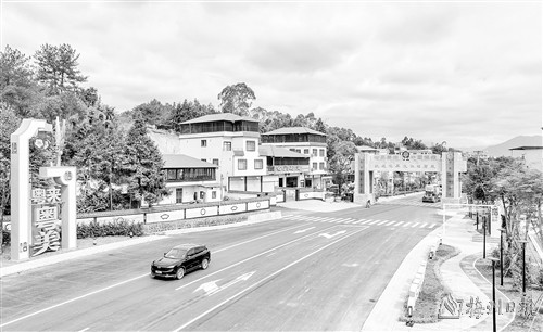 从蕉岭县广福镇叶田村出发,驱车沿着平坦宽阔的205国道来到粤闽两省交界处,沿途道路景观生机盎然,两侧店面亮丽规整,而路前方,焕然一新的省门门楼赫然矗立,引人入胜。