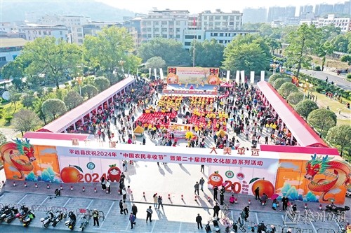 11月23日上午,庆祝2024年“中国农民丰收节”暨第二十届脐橙文化旅游系列活动开幕仪式在平远县人民广场举行。(钟小丰 摄)