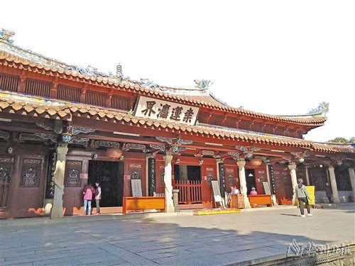 南少林寺又名镇国东禅少林寺,位于泉州清源山下,始建于唐朝,兴盛于两宋,至今已有上千年历史,其间风风雨雨,庙宇几毁几建,史迹犹在。迈进山门,我见到的是20世纪90年代重新修建的寺宇,寺内保存有唐代的柱础和墙体。寺宇虽不同于一般古刹的富丽堂皇,但别有一番古朴淡雅的韵味。整座寺院坐落于绿荫环抱之中,古木参天,浓荫蔽日,尤其是大雄宝殿前两棵高大粗壮、枝繁叶茂的千年古榕,使寺院于淡雅之中又平添了几分庄严与肃穆。