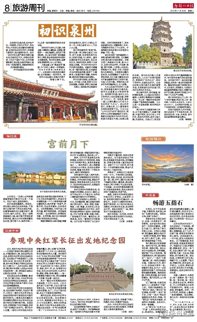 离开纪念馆,来到中央红军长征出发地纪念碑。纪念碑高为10.18米,寓意着当年红军战士10月18日在此渡河。碑体为双帆造型,象征中央红军由此扬帆出征。碑座左边为陆定一手书《长征歌》第一首:“十月里来秋风凉,中央红军远征忙,星夜渡过于都河,古陂新田打胜仗。”是中央红军夜渡于都河长征出发的真实写照。