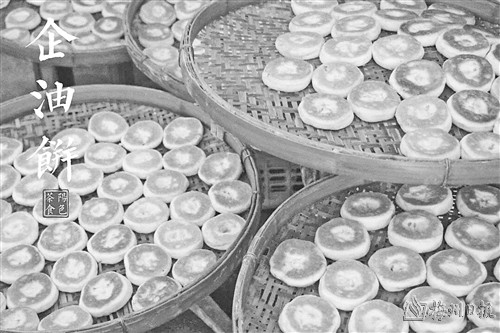企油饼,在梅州客家地区,相信大家都有所耳闻,特别是在茶阳,在大埔,在韩江流域,可以说是人人都吃过的一种饼食(以前客家人叫副食品为“等路”),还被奉为客家月饼。而在梅县松口,还有同样受欢迎的企炉饼,二者形状口味相似又略有不同。今天就给大家介绍一下的茶阳企油饼与松口企炉饼的区别和渊源。
