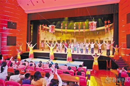 本报讯 (记者何梓瑜)经过数月的筹备,11月29日晚,由梅州市文化广电旅游局指导,梅州市客家山歌传承保护中心、梅州市戏剧研究工作室、梅州市山歌剧团有限公司联合出品的梅州非遗小剧场《风土·客韵》迎来了首批观众,正式开门迎客。