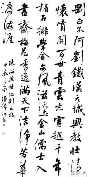 刘元城,名刘安世,字器之,河北大名(今河北馆陶)人。北宋大臣,以直谏闻名,被时人称之为“殿上虎”。挚友苏东坡誉称其为“真铁汉”。元符元年(1098年)其被贬谪至梅州,弘扬文教,成绩斐然,广受爱戴。本期《书画》选登由梅江区诗词学会会员创作、梅江区书法家协会会员书写以及梅州文史学者撰并书的咏赞刘元城诗、联、文书法作品,以飨读者。(林德培)