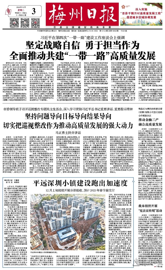 本报讯 (记者罗诚浩 特约记者辜昀玥)根据《中国共产党巡视工作条例》和省委、市委有关工作安排,12月2日,市委领导班子召开巡视整改专题民主生活会。会议坚持以习近平新时代中国特色社会主义思想为指导,认真学习贯彻党的二十届三中全会精神,深入学习贯彻习近平总书记和党中央对巡视工作作出的系列部署,认真贯彻落实新修订的《中国共产党巡视工作条例》和全国巡视工作会议精神,深化党纪学习教育,认真落实省委“1310”具体部署,聚焦省委巡视反馈意见开展批评与自我批评,坚持问题导向、目标导向、结果导向相统一,做到立行立改、全面整改、真改实改,扎实做好巡视“后半篇文章”,切实把巡视成果转化为深入实施“百千万工程”、推动全市经济社会高质量发展和全面从严治党的强大动力,为梅州苏区加快振兴、共同富裕提供坚强保障。市委书记马正勇主持会议并讲话。