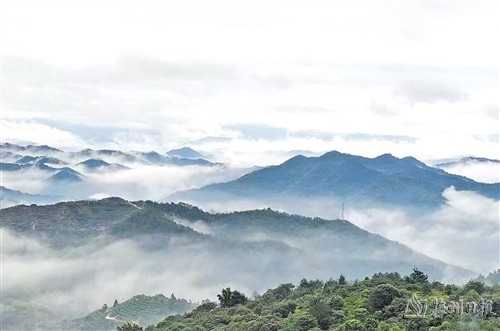 楼房在山上,耕地在山下,公路在山间林中,四周是茂密的林木,好像置身于一个神秘安全的世界。遥遥望去,仿佛屹立在茫茫林海之中。对面是连绵群峰,远山如黛,深深浅浅,云以山为体,山以云为衣,这才是名副其实的“客家香格里拉”。正是:“山中薄雾醉烟霞,脚踩白云神采嘉。观赏旅游添气势,密林深处好人家。”(文/图 刘振桓)