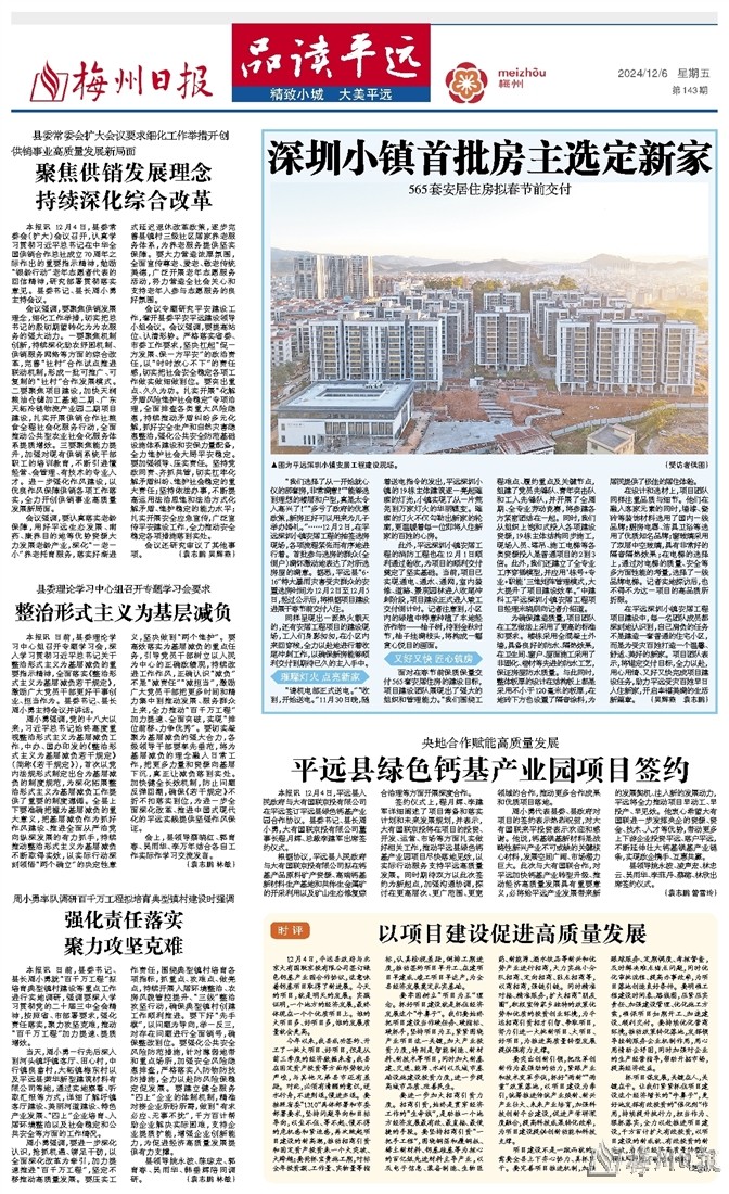 本报讯 12月4日,平远县人民政府与大有国联京投有限公司在平远签订平远县绿色钙基产业园合作协议。县委书记、县长周小勇,大有国联京投有限公司董事长程月辉、总裁李建军出席签约仪式。