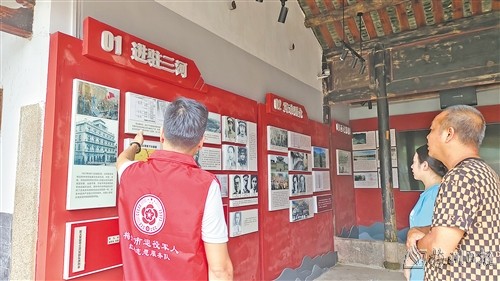 红色是三河的底色。传承着红色血脉的三河镇退役军人服务站也依托当地红色资源,串联三河坝纪念园、朱德指挥部旧址、汇东学习书院以及三河坝战役后方转移线路等红色景点,串珠成链打造爱国主义教育基地和退役军人红色教育基地,把赓续红色精神与退役军人思想政治工作有机融合,充分发挥好红色资源的思政教育作用。“我们退役军人服务站4名工作人员都是红色讲解员,讲解时会将历史事件融入其中,也会积极组织开展爱国主义教育、青少年思想道德教育等活动,积极引导党员干部、青年学生传承红色基因,厚植爱国情怀。”杨尧说,退役军人不仅是红色讲解员,还是热心的红梅志愿者、红领巾宣讲队成员。迄今,该镇已有40名退役军人注册成为退役军人志愿者。